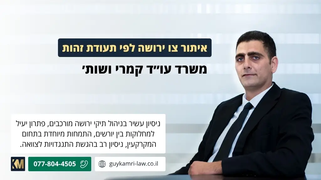 משרד קמרי ושות' מתמחה בליווי משפחות בכל שלבי הטיפול בירושה – החל מאיתור הצווים ועד לחלוקת הרכוש בפועל. אם אתם צריכים ליווי אישי, שקוף ומקצועי – אנחנו כאן בשבילכם.