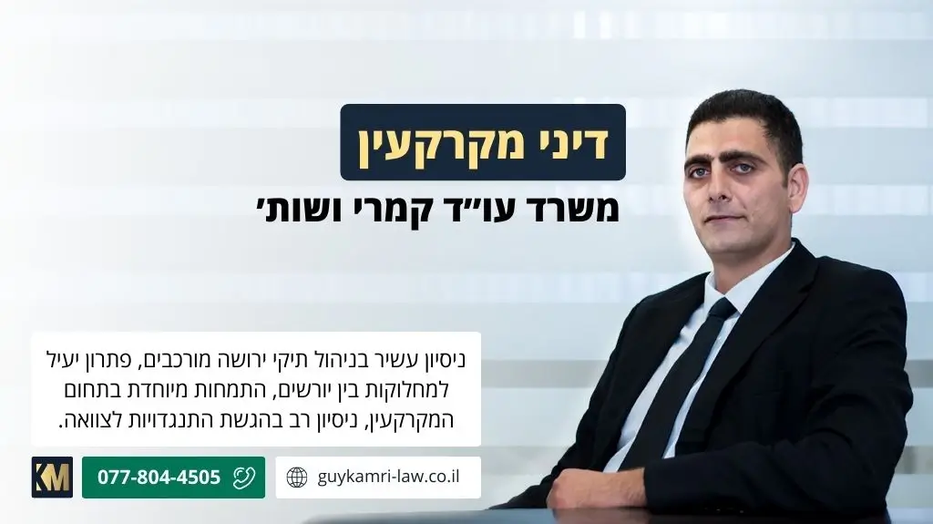 דיני מקרקעין בישראל הם תחום מורכב ורגיש עם השלכות משמעותיות על חייכם. אל תוותרו על ליווי משפטי מקצועי שיבטיח את זכויותיכם בכל עסקה או הליך משפטי. אתם מוזמנים לפנות למשרד קמרי ושות', להתייעץ איתנו ולקבל ליווי משפטי אישי ואיכותי לאורך כל הדרך.