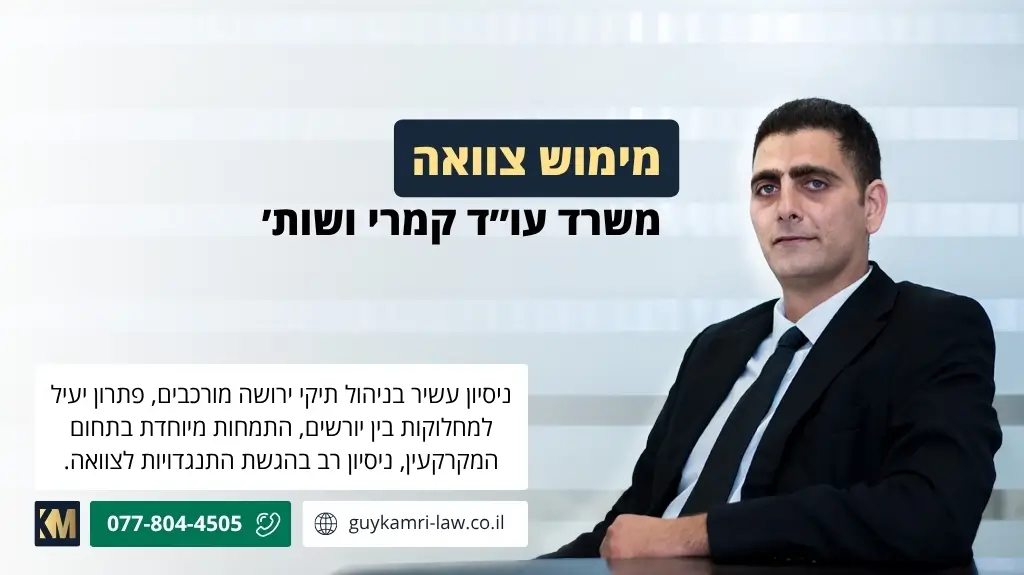 במקרים שבהם יש נכסים משותפים, ירושה חלקית, או זכויות מורכבות (כמו חברות, משקים או נחלות), מתבצע הליך נוסף של פיצול, מימוש או רישום מחדש של הזכויות. לעיתים עולה הצורך בייעוץ משפטי כדי לוודא שהמימוש מתבצע לפי לשון הצוואה, אך גם לפי דיני הקניין בישראל.