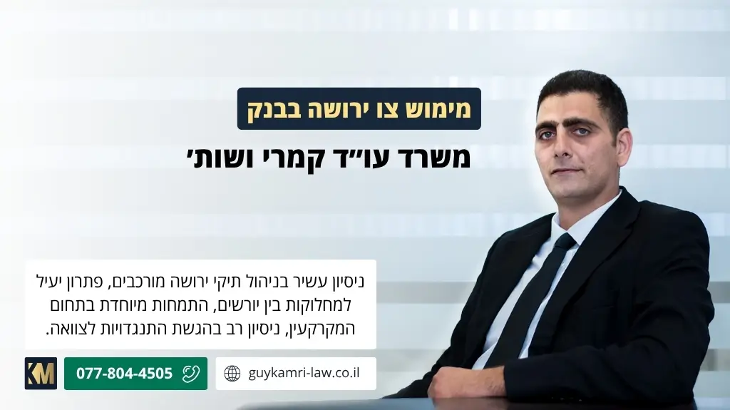 • אם קיימת מחלוקת בין יורשים – הבנק עשוי לדרוש הכרעה משפטית לפני פעולה