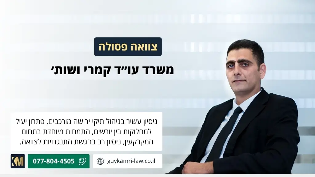 משרד קמרי ושות׳ מלווה משפחות ויורשים בכל ההליכים הקשורים לצוואות וירושות, לרבות ייעוץ מוקדם בניסוח צוואה תקינה, ייצוג בהתנגדויות ובערעורים, וניהול הליכים משפטיים מורכבים הקשורים ל – פסק דין התנגדות לצוואה ולטענות של פסילת צוואה.